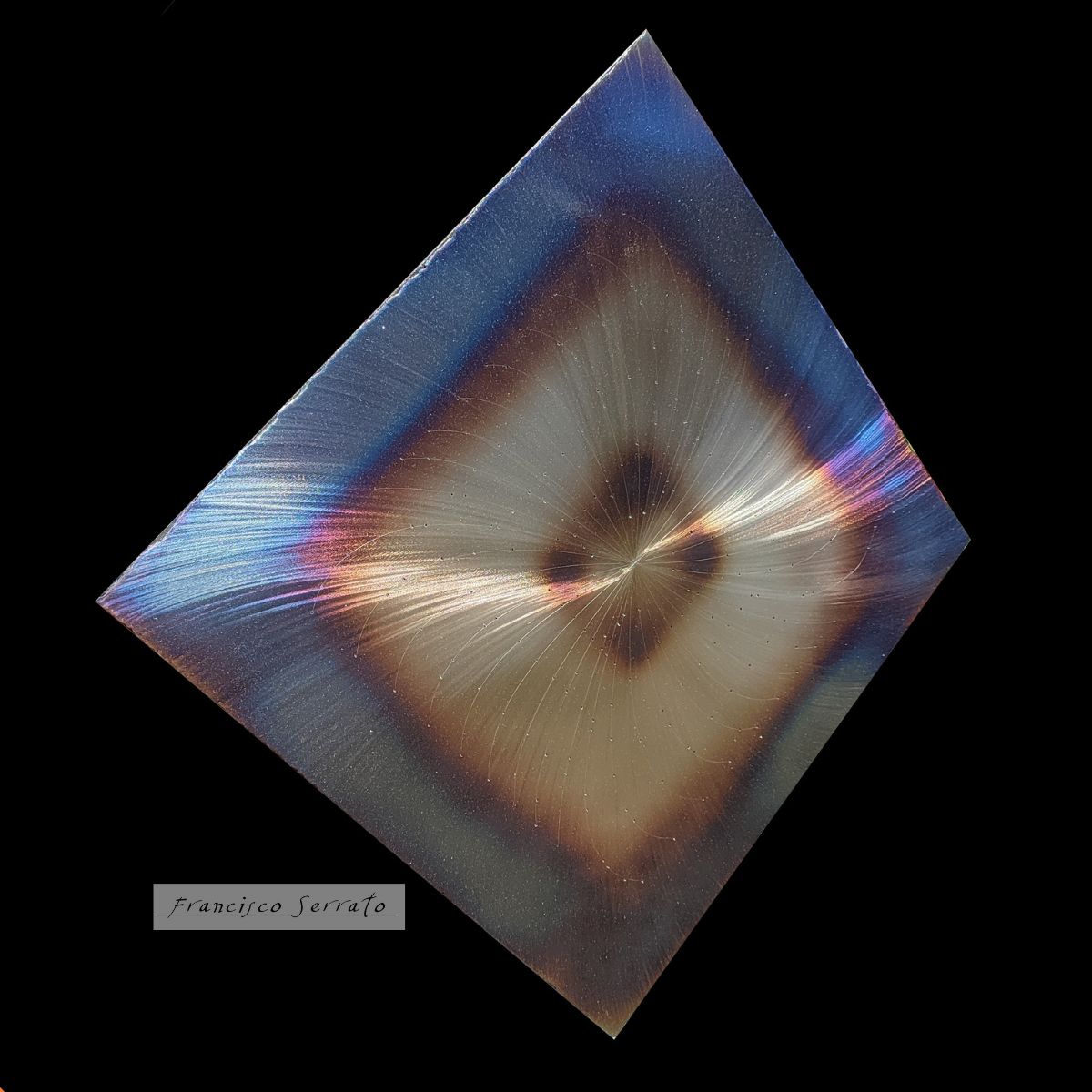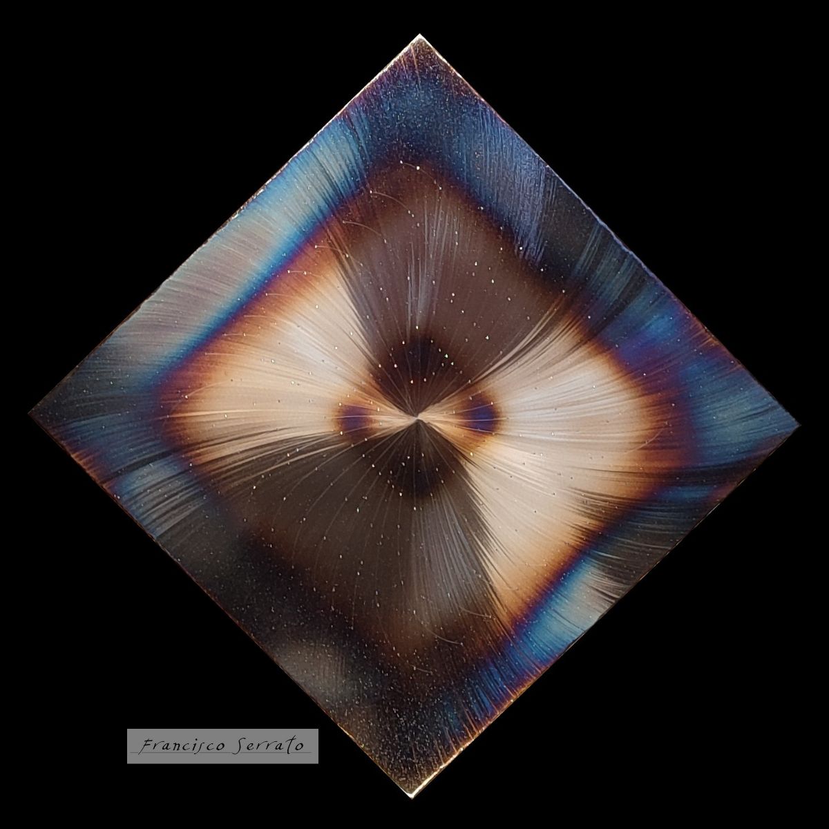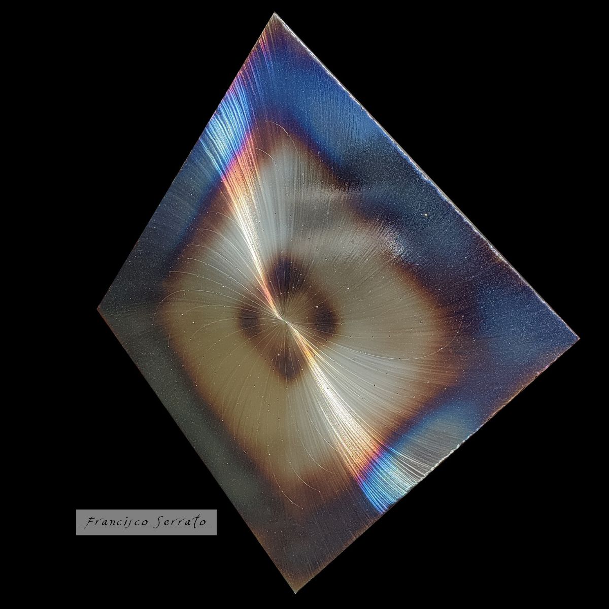La partie teintée par le chalumeau crée une dynamique visuelle rappelant l’hétérochromie iridienne, où différentes teintes s’entrelacent harmonieusement comme les nuances d’une iris.