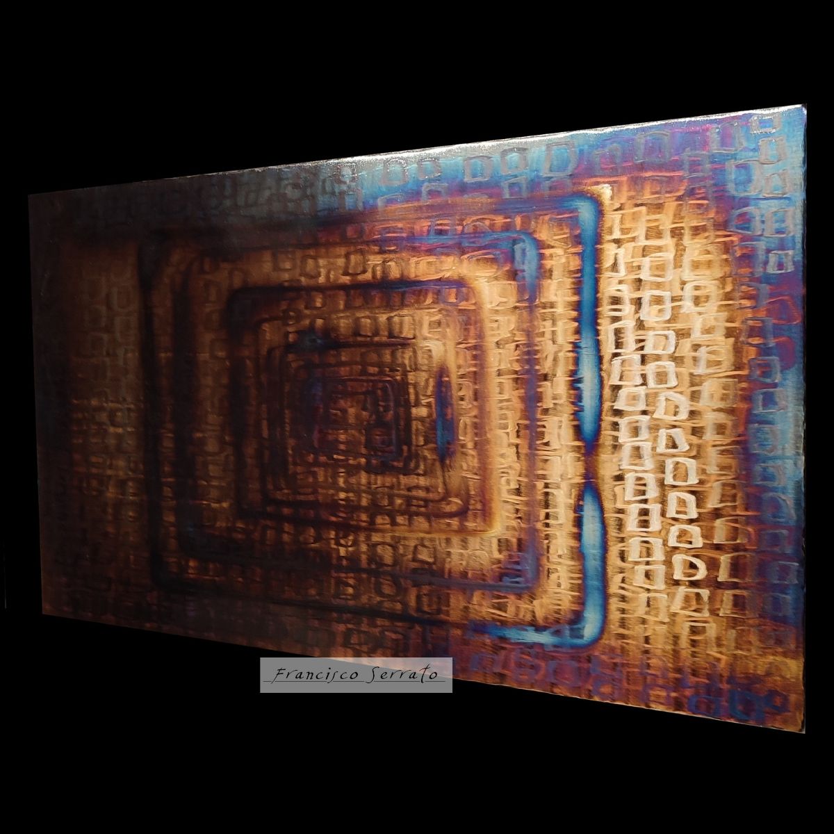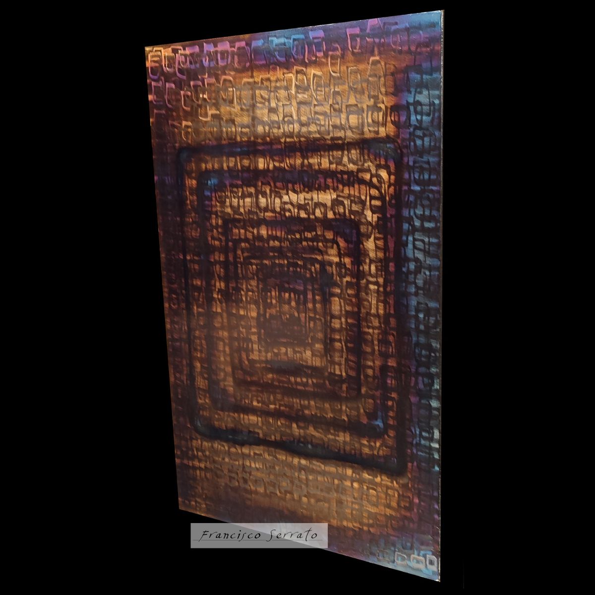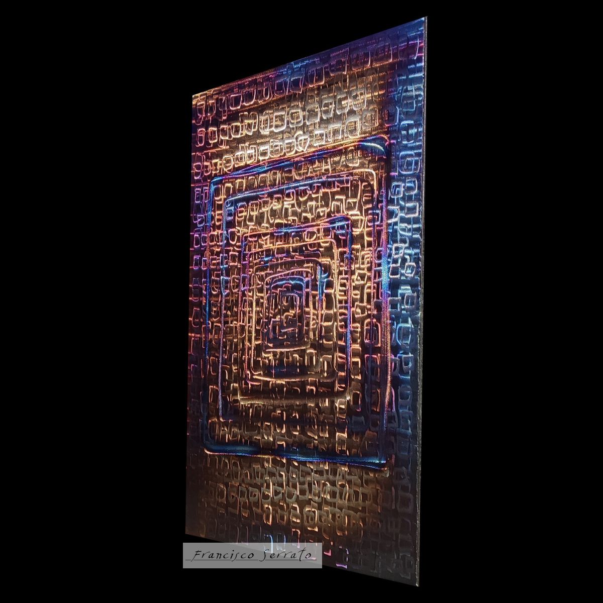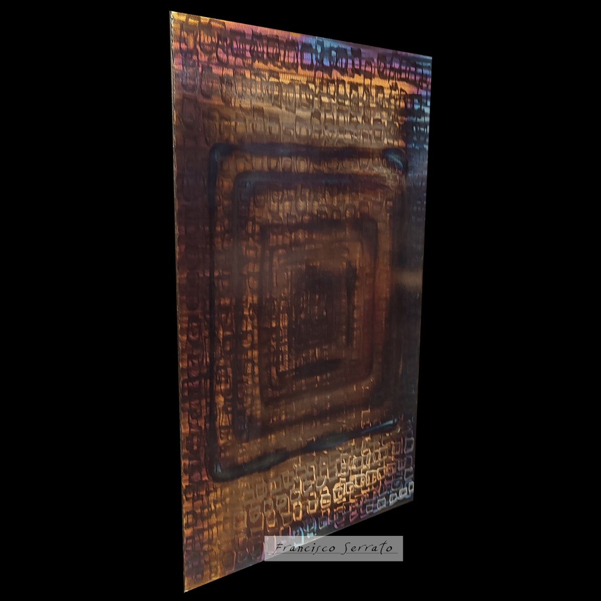 Les carrés s’enchaînent, s’imbriquent, sculptés dans la chaleur du métal, jusqu’à créer une vibration visuelle presque hypnotique.