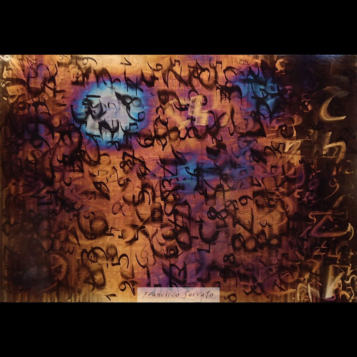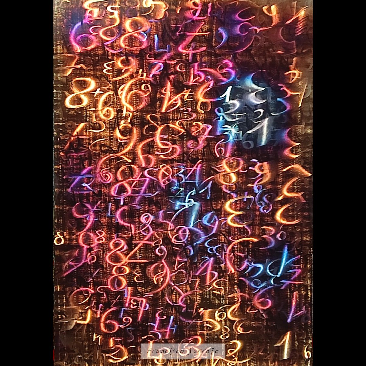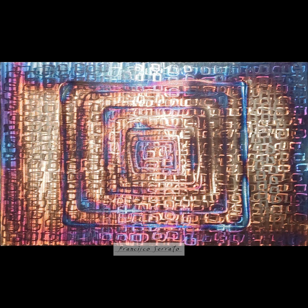 Des éclairs d’abstraction fusent dans toutes les directions, comme des ondes émanant de cette source centrale. Les nuances dynamiques, allant des teintes chaudes aux tonalités plus froides, suggèrent une gamme infinie d’émotions.