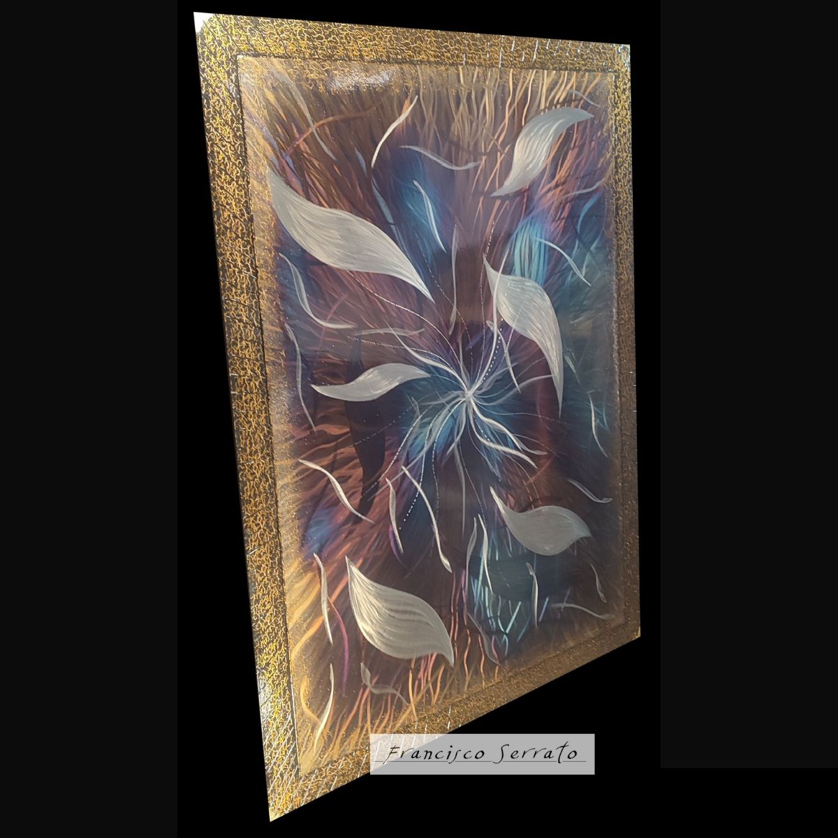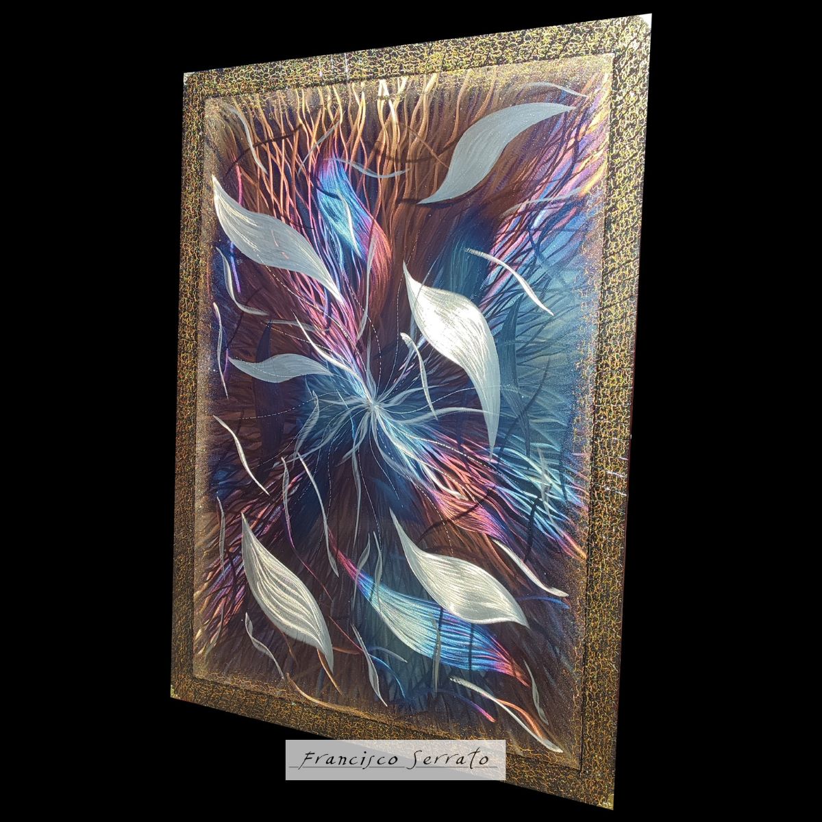 NEXUS SIDERAL est une œuvre saisissante qui explore la rencontre entre lumière et matière. L’acier, délicatement sculpté, se transforme en une sphère d’énergie, avec des filaments lumineux s’étendant depuis le centre, créant une symétrie parfaite. La palette de couleurs métalliques, allant des bleus profonds aux teintes iridescentes, génère un jeu fascinant de reflets et de vibrations. Chaque changement d’angle révèle de nouvelles nuances, faisant de cette pièce un véritable univers en constante évolution.